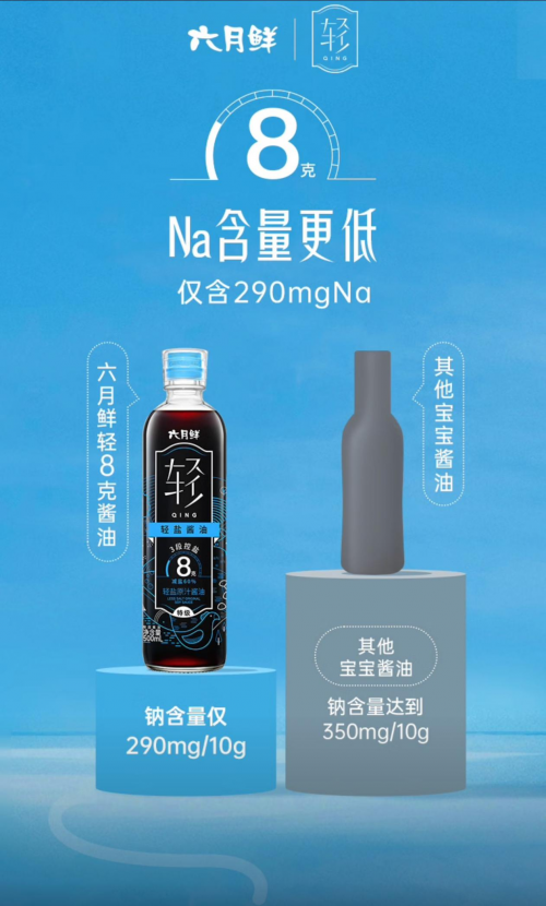 “宝宝专用”酱油钠含量反而更高?六月鲜8克轻盐酱油打破虚标乱象