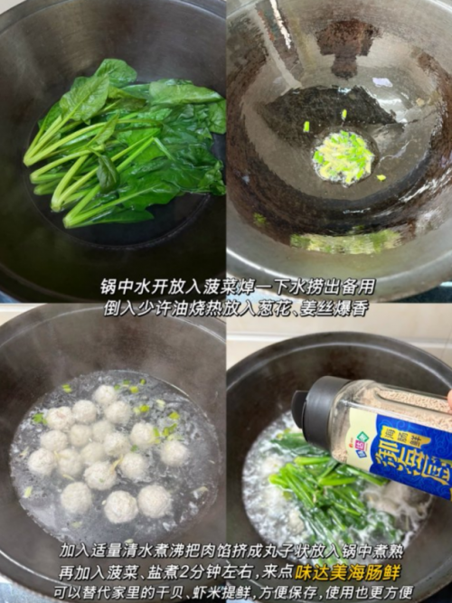 菜谱 2:菠菜莲藕肉丸汤