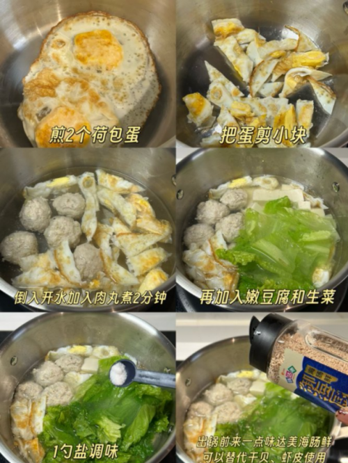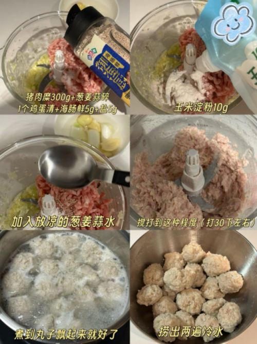 猪肉末、鸡蛋清、葱姜蒜、玉米淀粉、豆腐、生菜、味达美御海厨海肠鲜